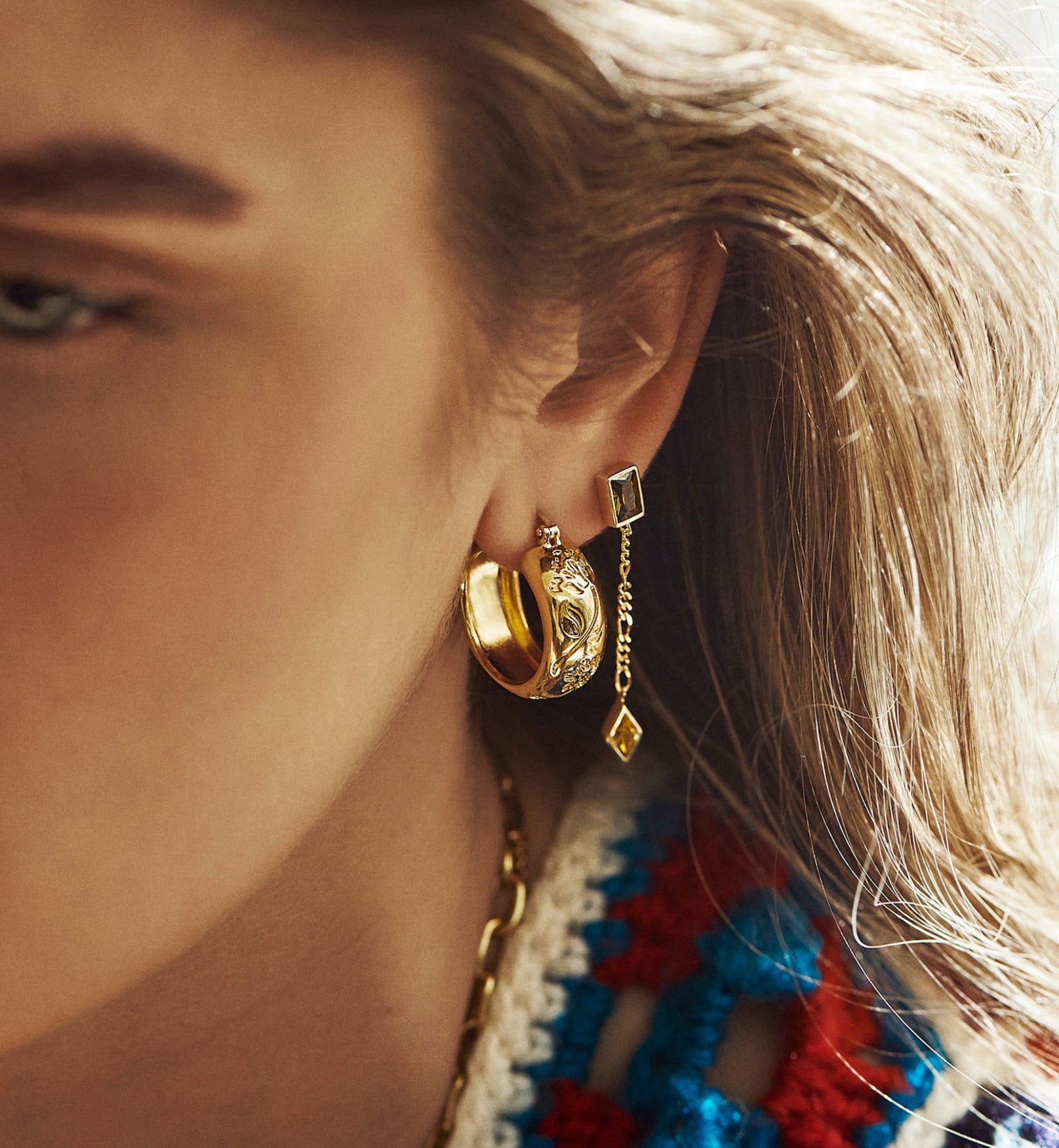 De Flower Garland Stamped Hoop Earrings zijn de perfecte toevoeging aan je oorbellencollectie. De dikke hoops hebben een gegraveerd bloemenpatroon dat een subtiele speelse touch toevoegoegen aan je outfit. Perfect om te combineren met je persoonlijke favorieten of om op zichzelf te dragen.